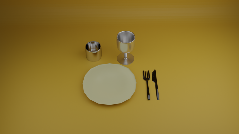 Este modelo contiene: Cubiertos, un baso, una copa y un plato, perfecto para rellenar modelados 3D
